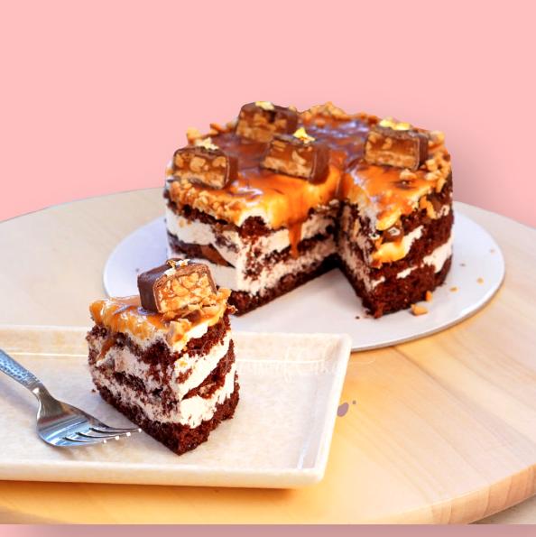 Indulge in the ultimate treat for chocolate and caramel lovers alike with our sensational Snickers Cake, exclusively crafted at The House of Cakes Dubai. Immerse yourself in layers of moist chocolate sponge cake, generously filled with creamy caramel and crunchy peanuts, reminiscent of everyone's favorite candy bar.